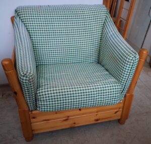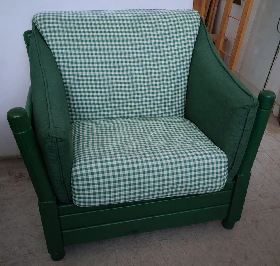 Misure: Larghezza cm.x, Profondità cm. Y, H. cm. Le misure si intendono comprese di cuscini.