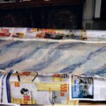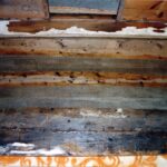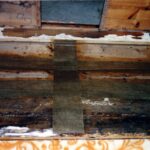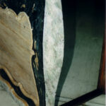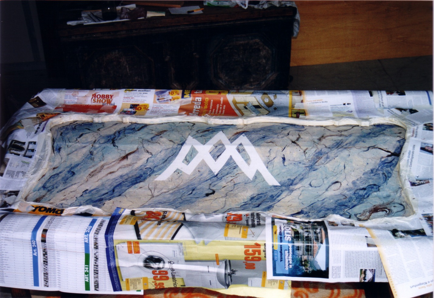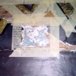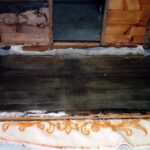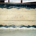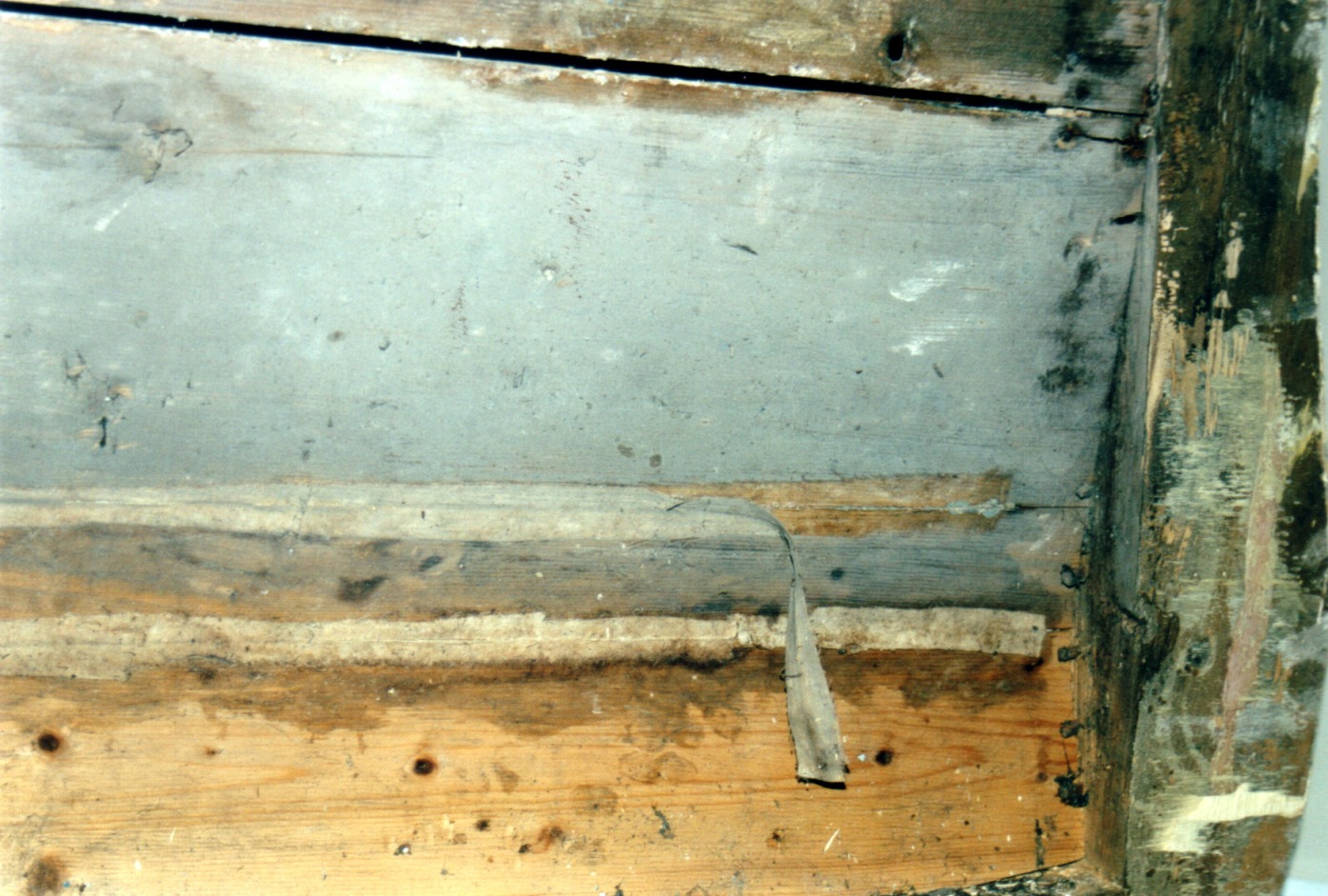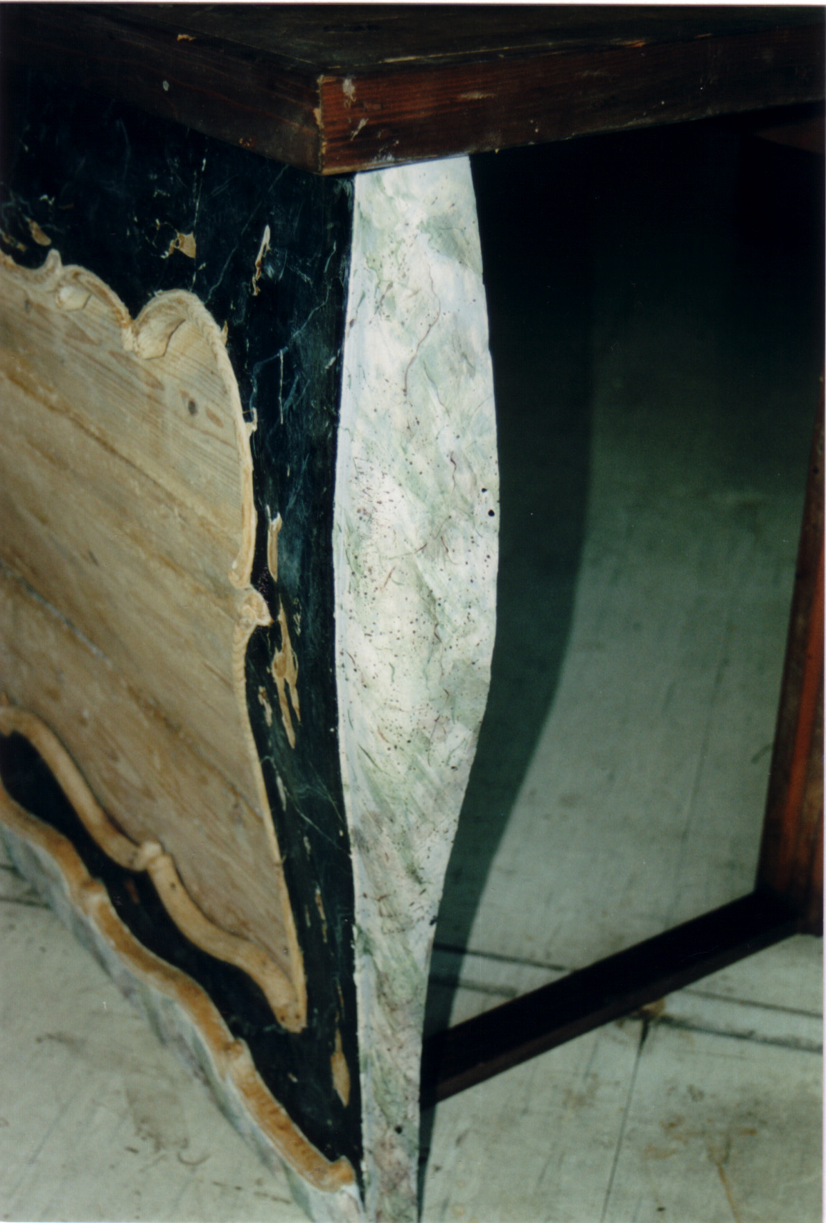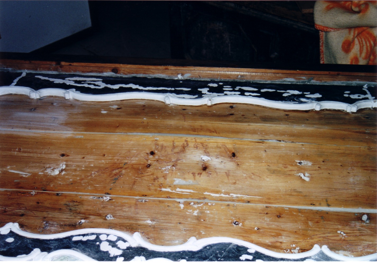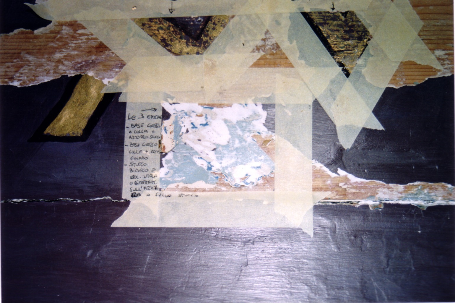 piccolissime porzioni della pittura originale a “finto marmo” sui toni dell’azzurro che, assieme alla comparazione