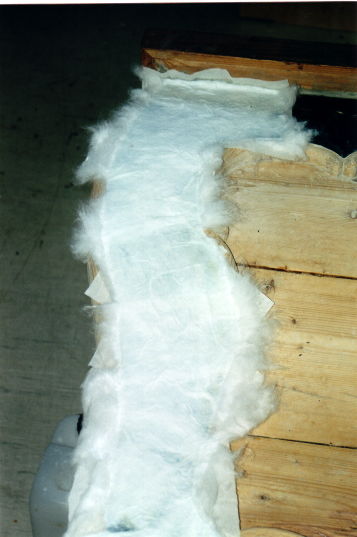 tutte le porzioni superstiti di pittura originale anche mediante impacchi con prodotti specifici. Il colore viola non