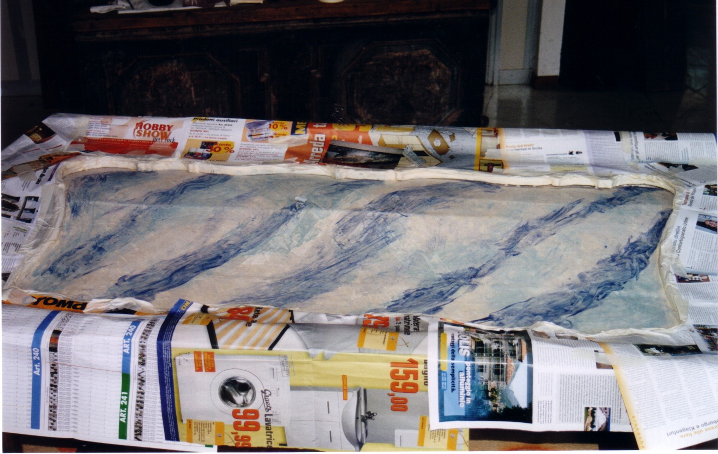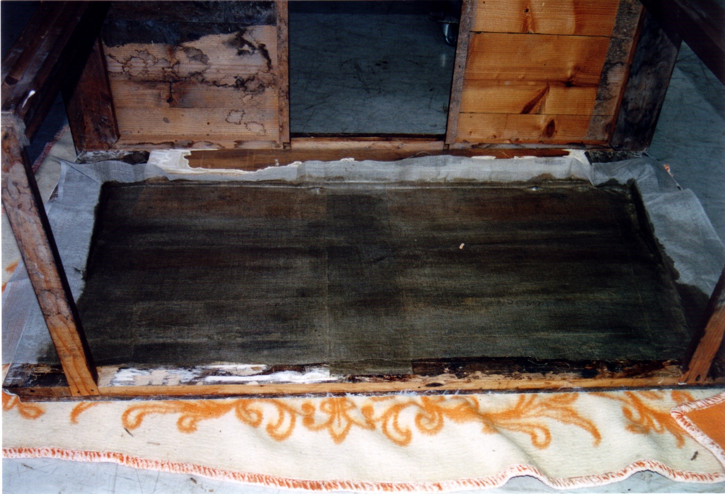 Il restauro strutturale è consistito nel risanare il legno di base, eliminare i tarli, ridare forma, dall’interno, alla bombatura anteriore dell’opera nonché incollare tutte le parti non più adese della struttura.
