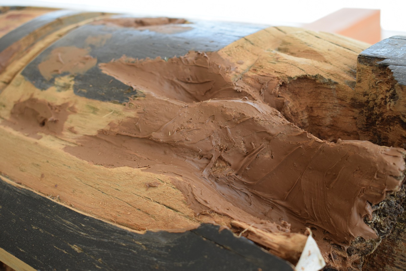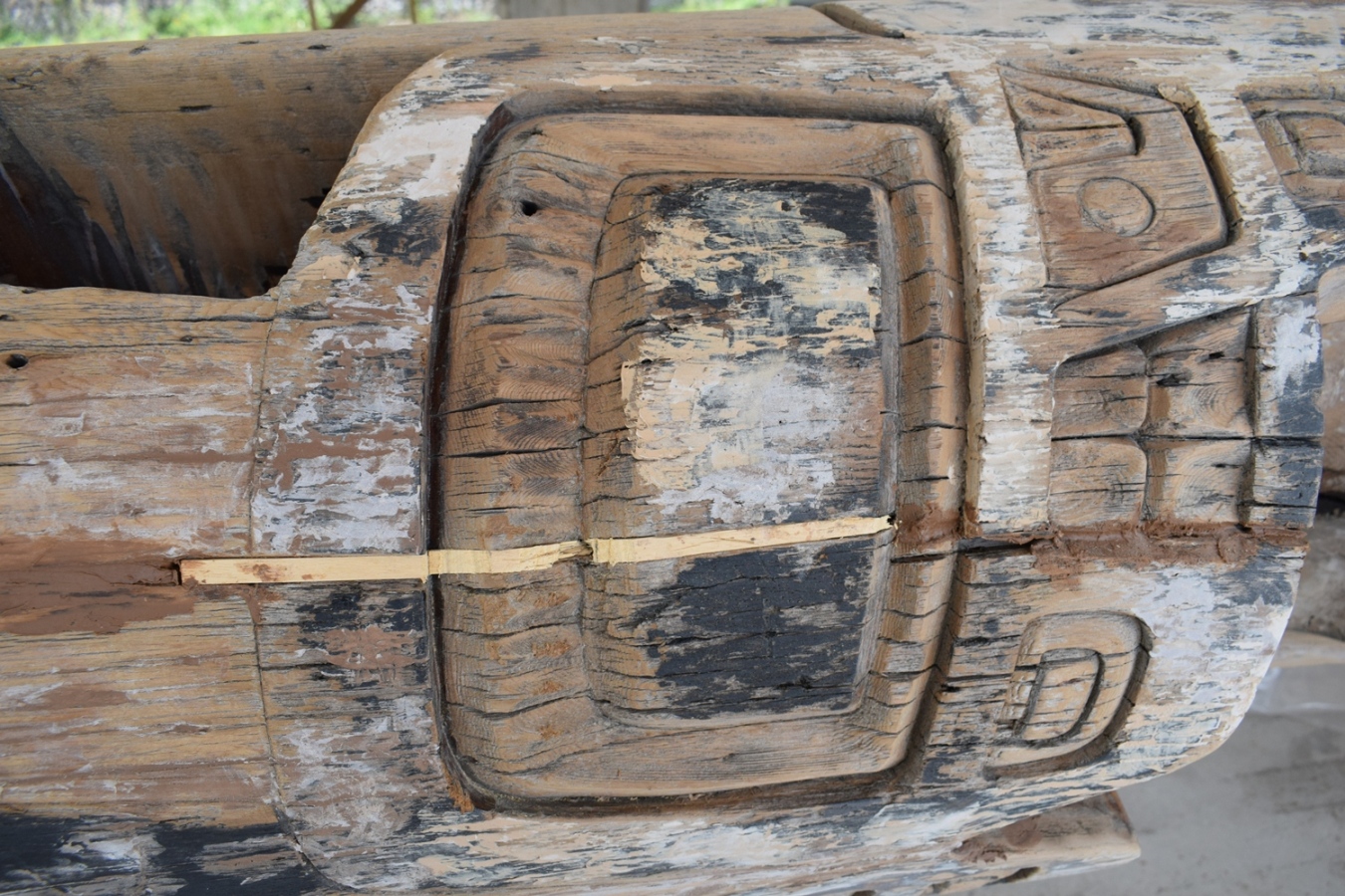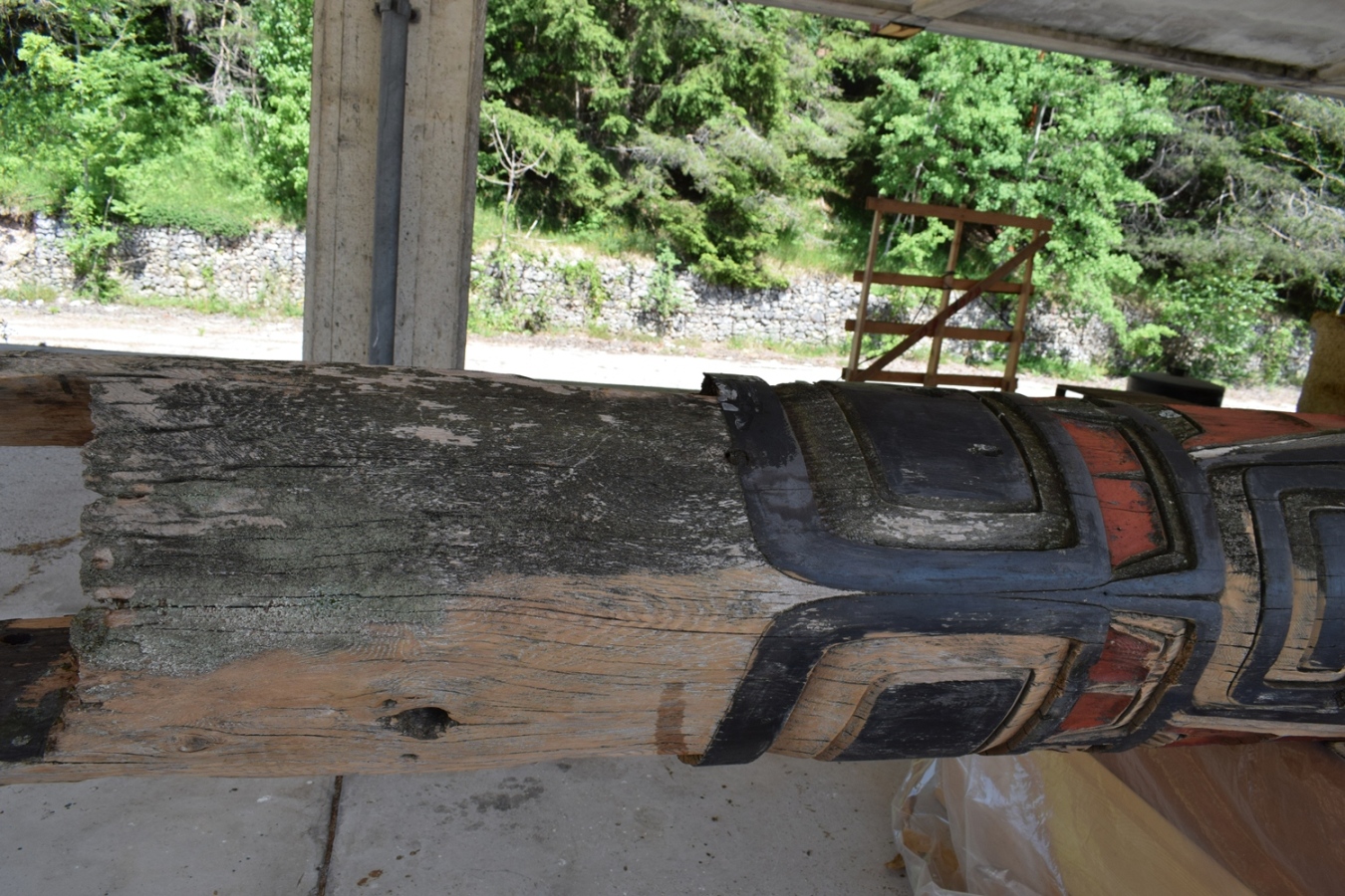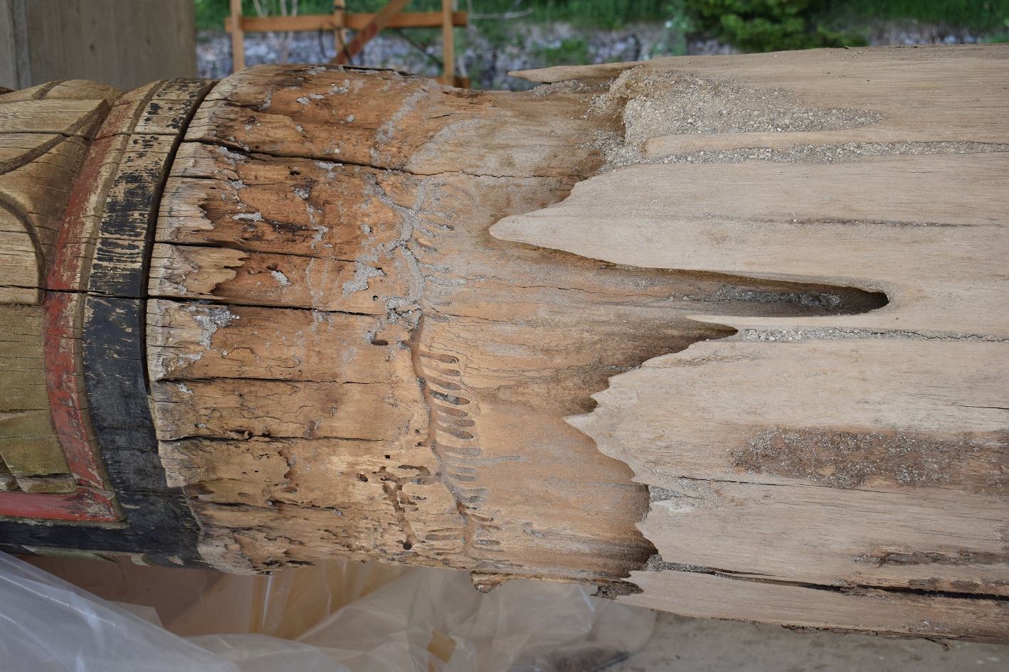 La prima operazione è stata l’eliminazione di tutti gli insetti xilofagi che avevano scelto il totem come propria dimora