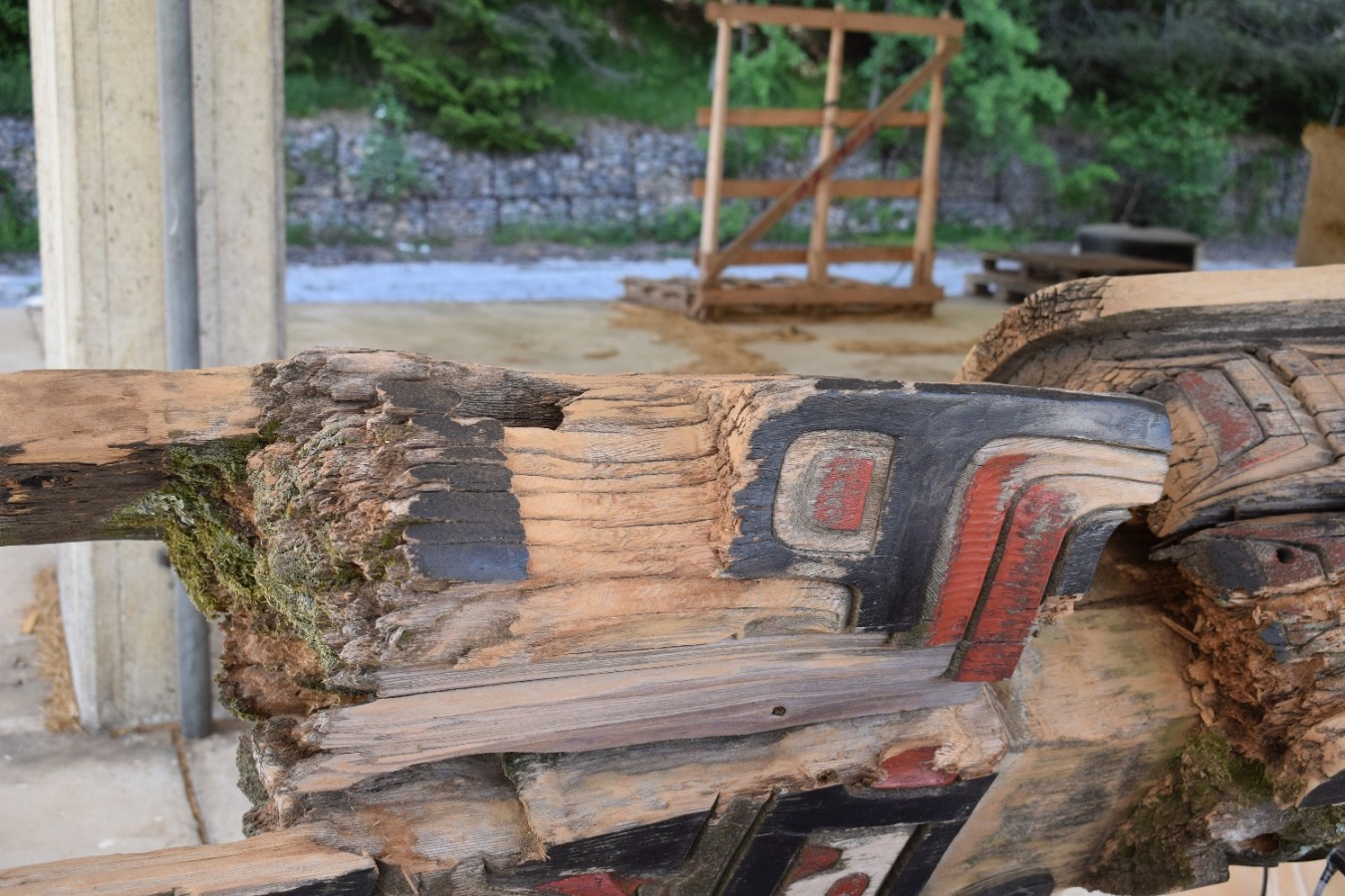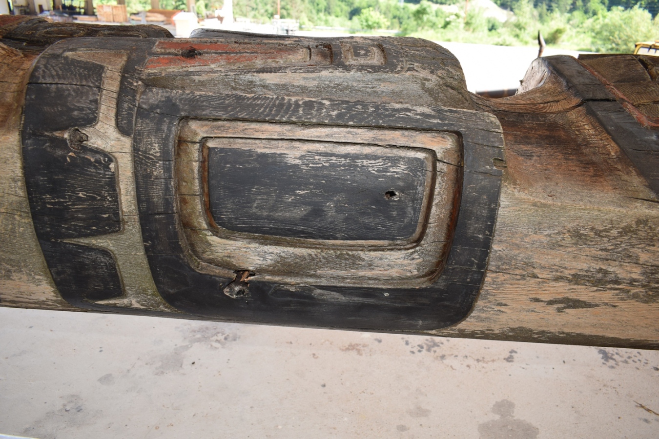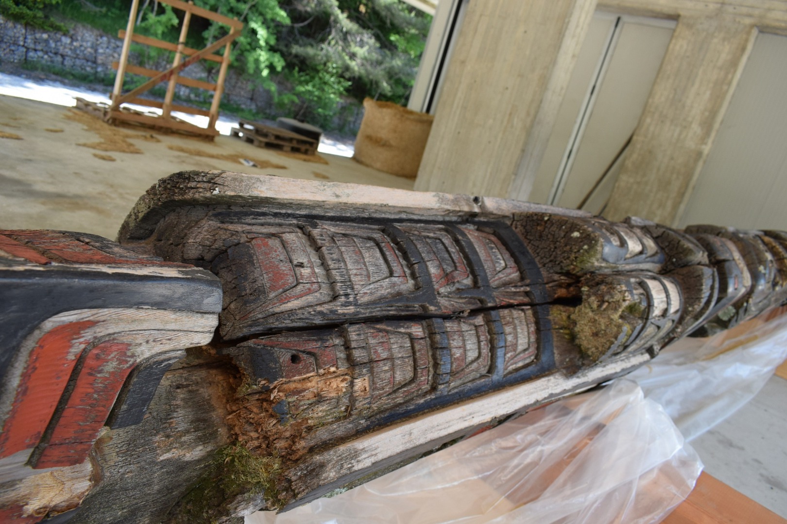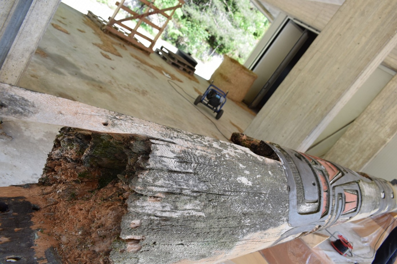 La prima operazione è stata l’eliminazione di tutti gli insetti xilofagi che avevano scelto il totem come propria dimora