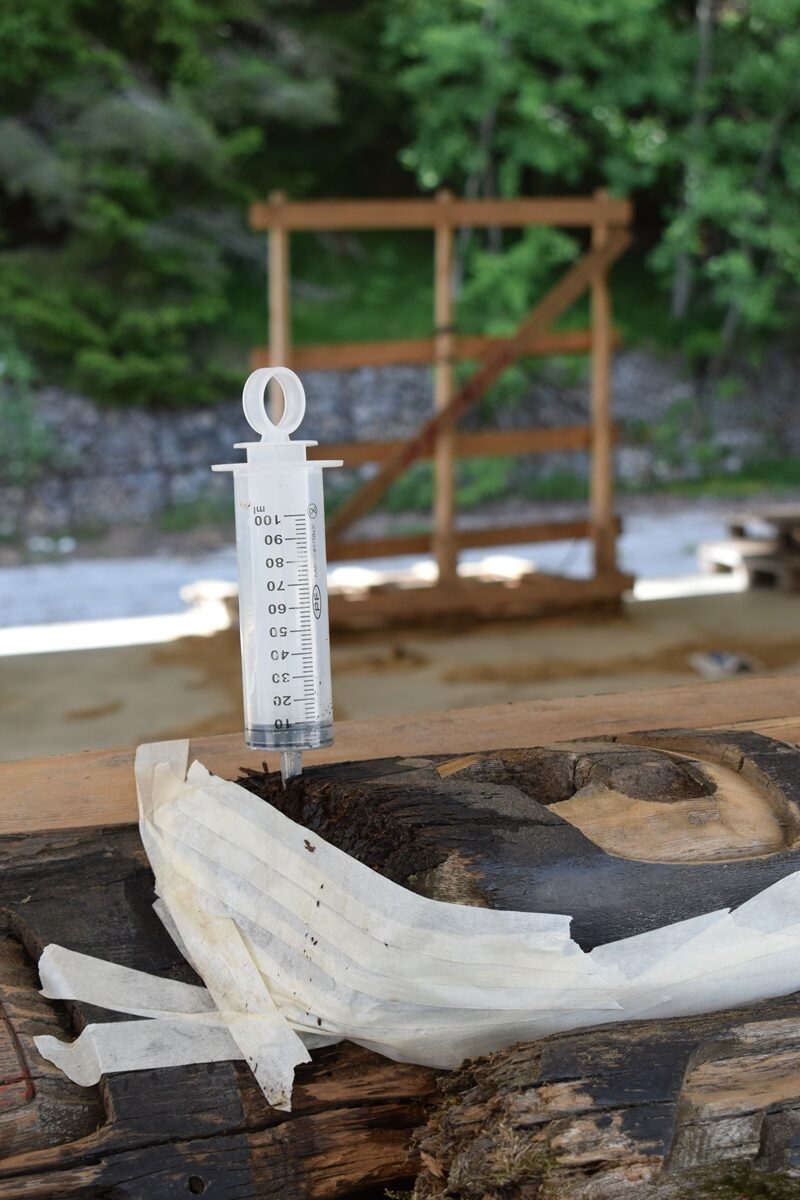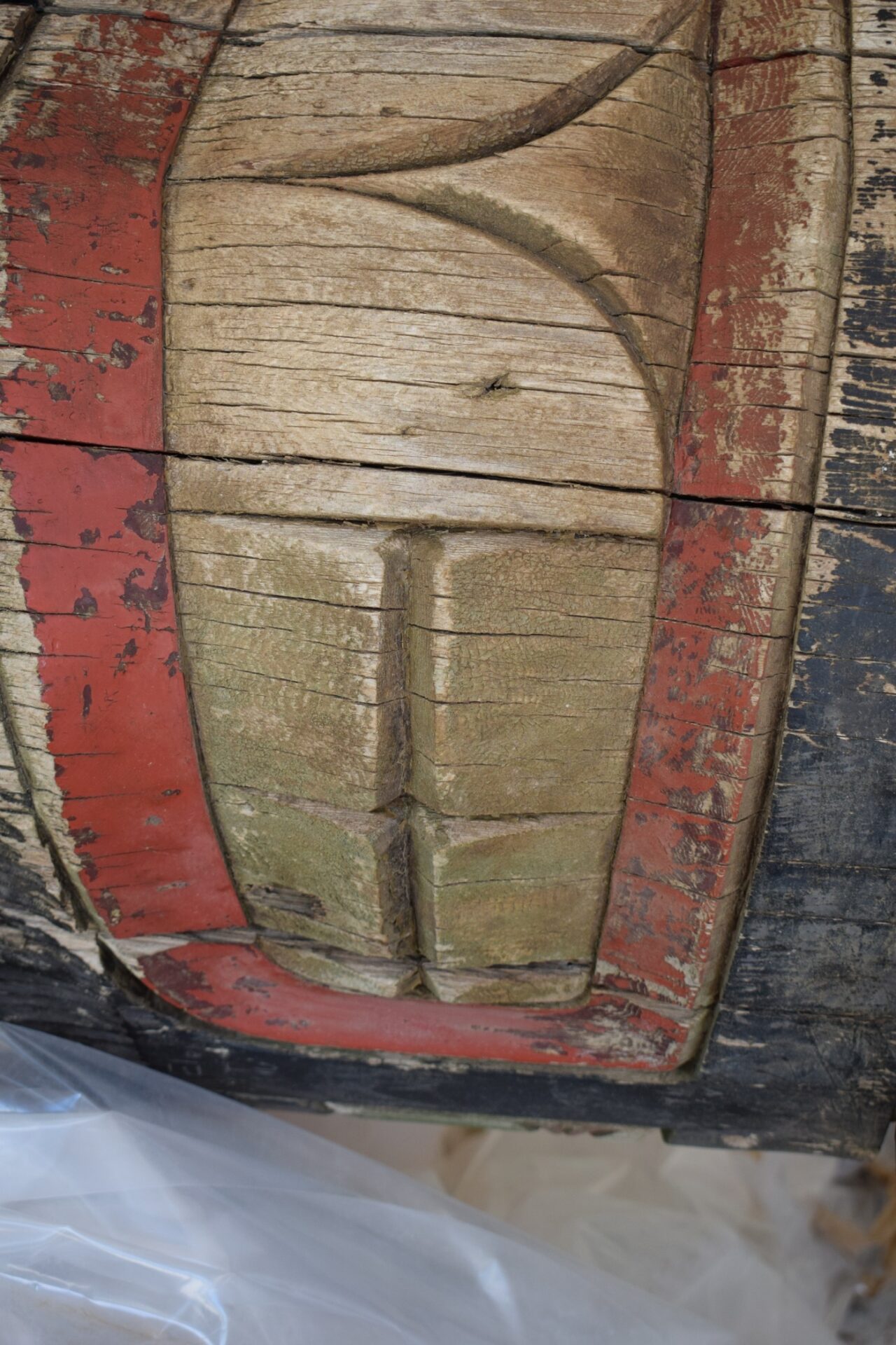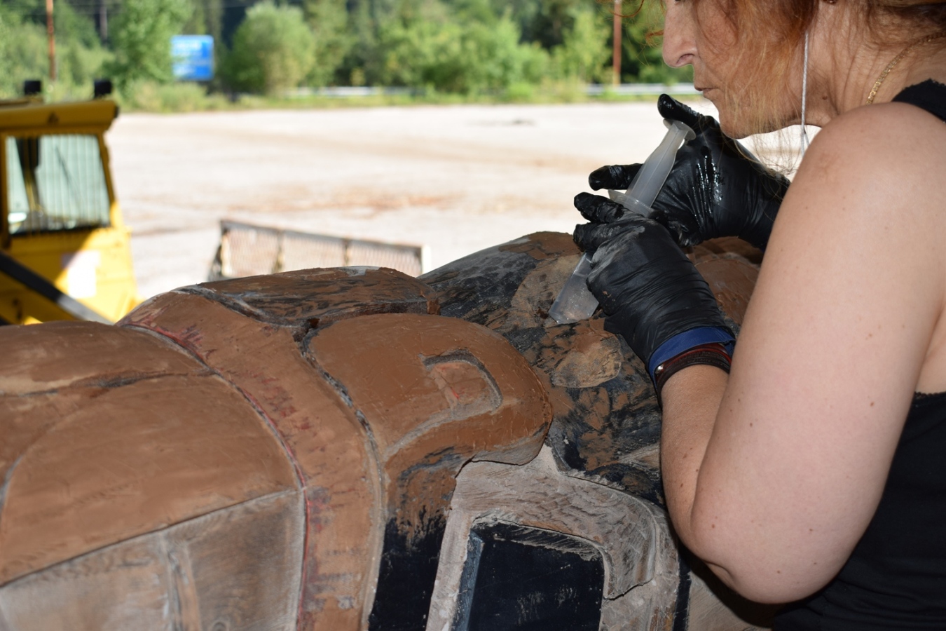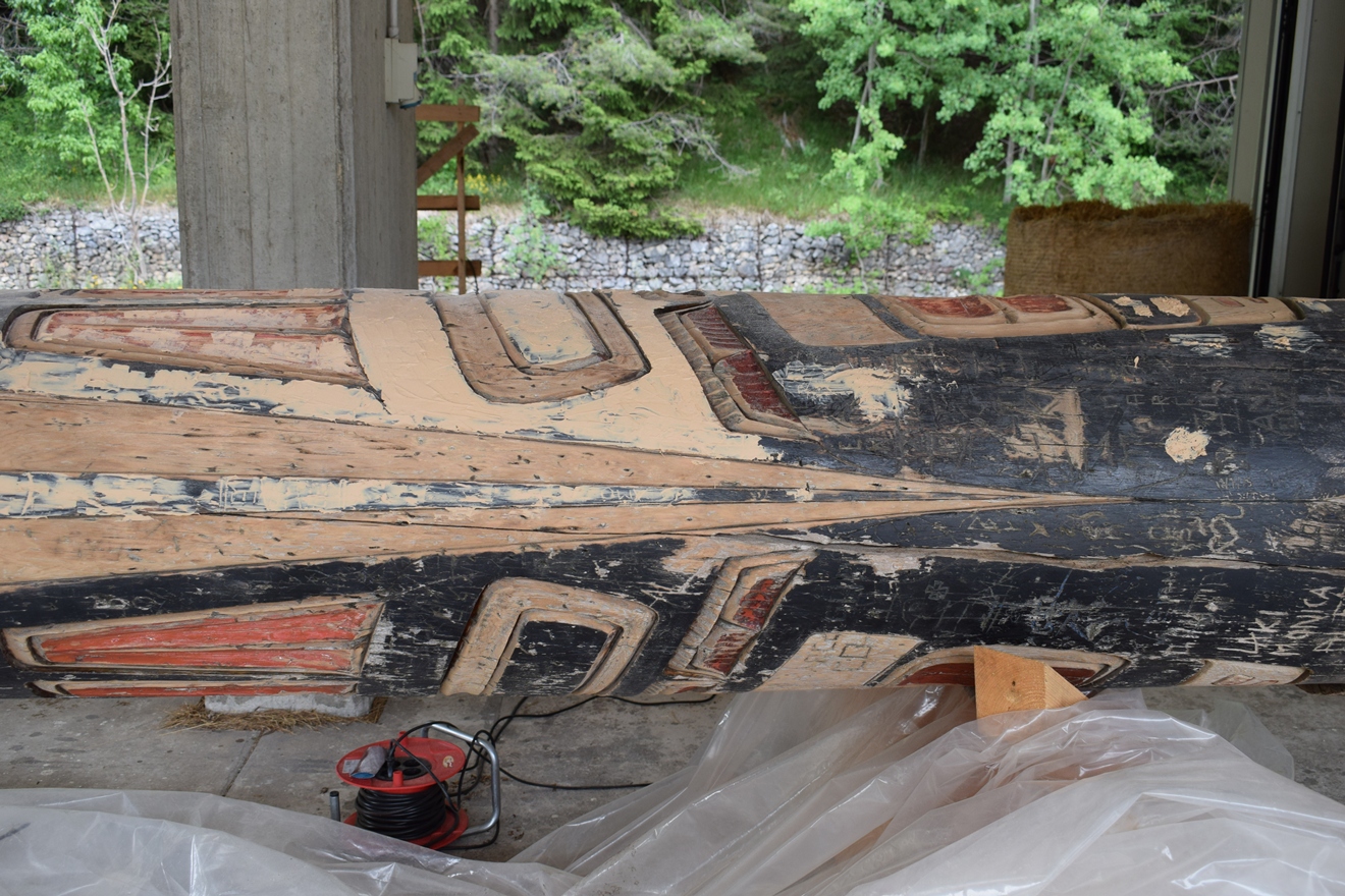 La prima operazione è stata l’eliminazione di tutti gli insetti xilofagi che avevano scelto il totem come propria dimora