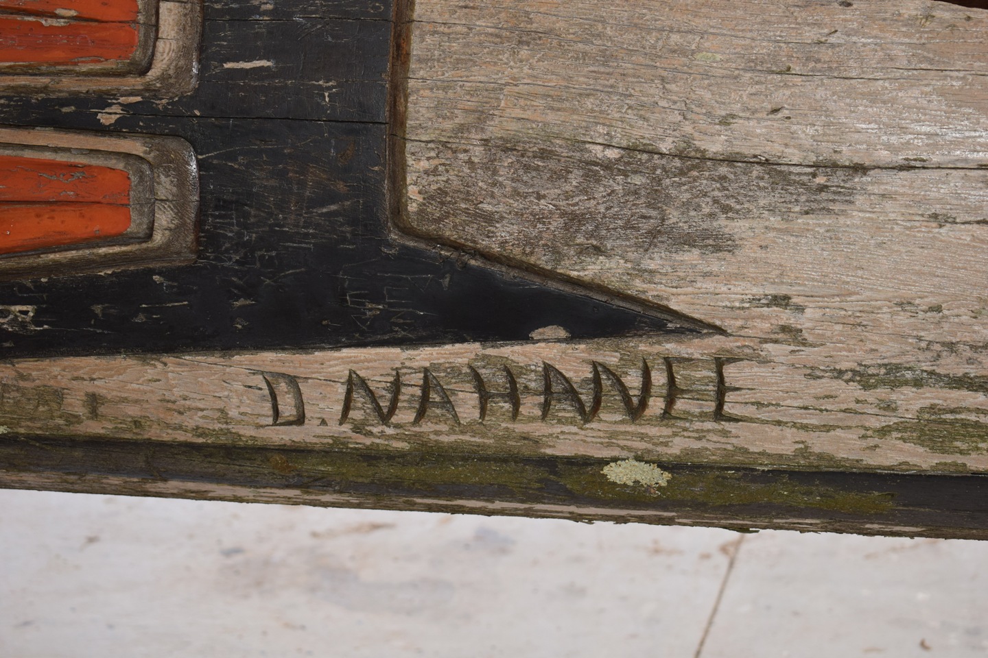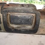 Consolidamento del legno nei punti in cui risultava oramai frastagliato, fragile ed inconsistente.