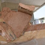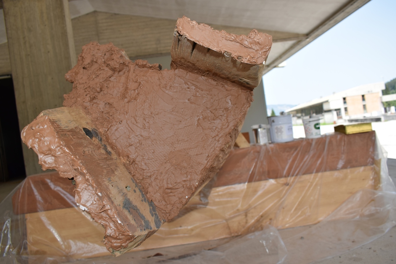 La base dell’opera era intrisa d’acqua. Prima di iniziare il restauro il manufatto è stato fatto asciugare il più possibile.